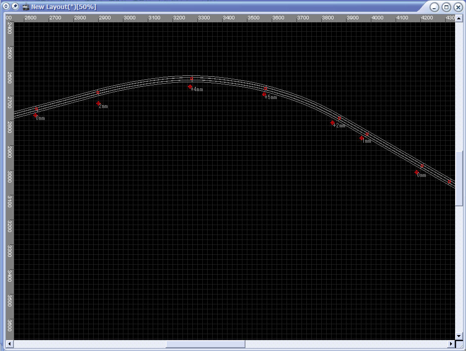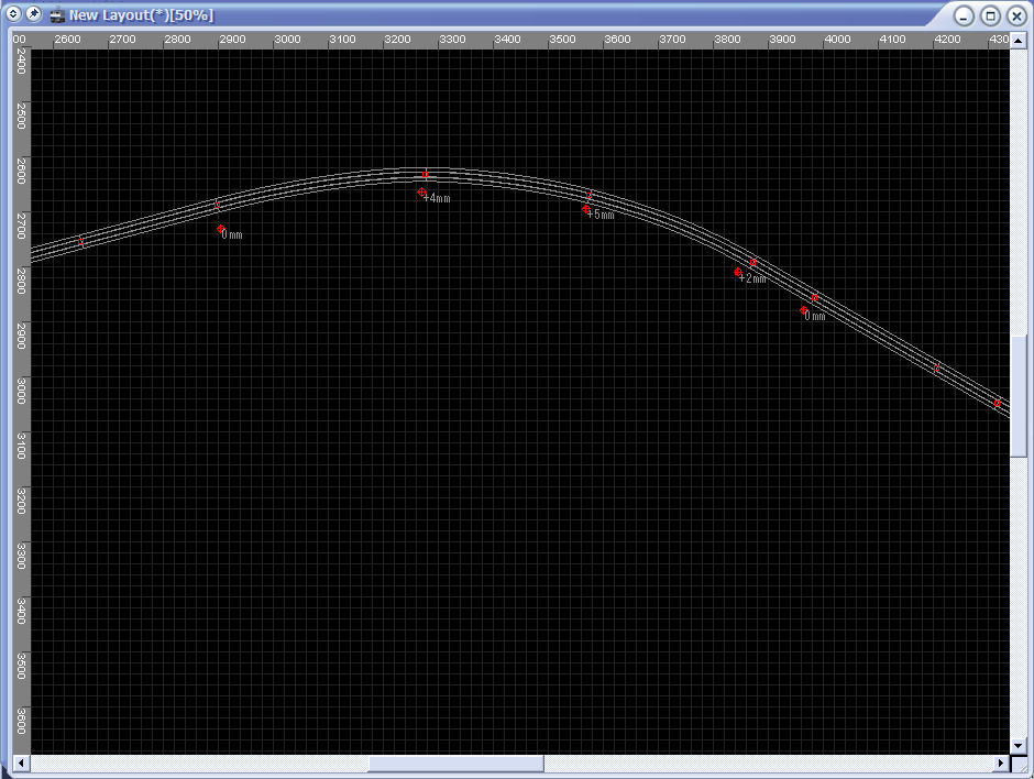 現実のカント、よくよく見てみると、本格的な曲線部分に入る前から線路が傾いているんですね。