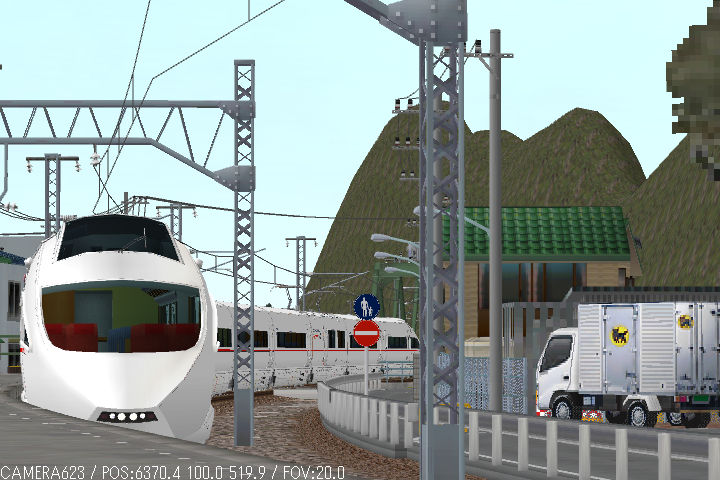 カーブの真ん中を微妙に持ち上げるよりも、カーブ全体を勾配の中においた方が、列車走行の様子がナチュラルに!(思いこみ?)